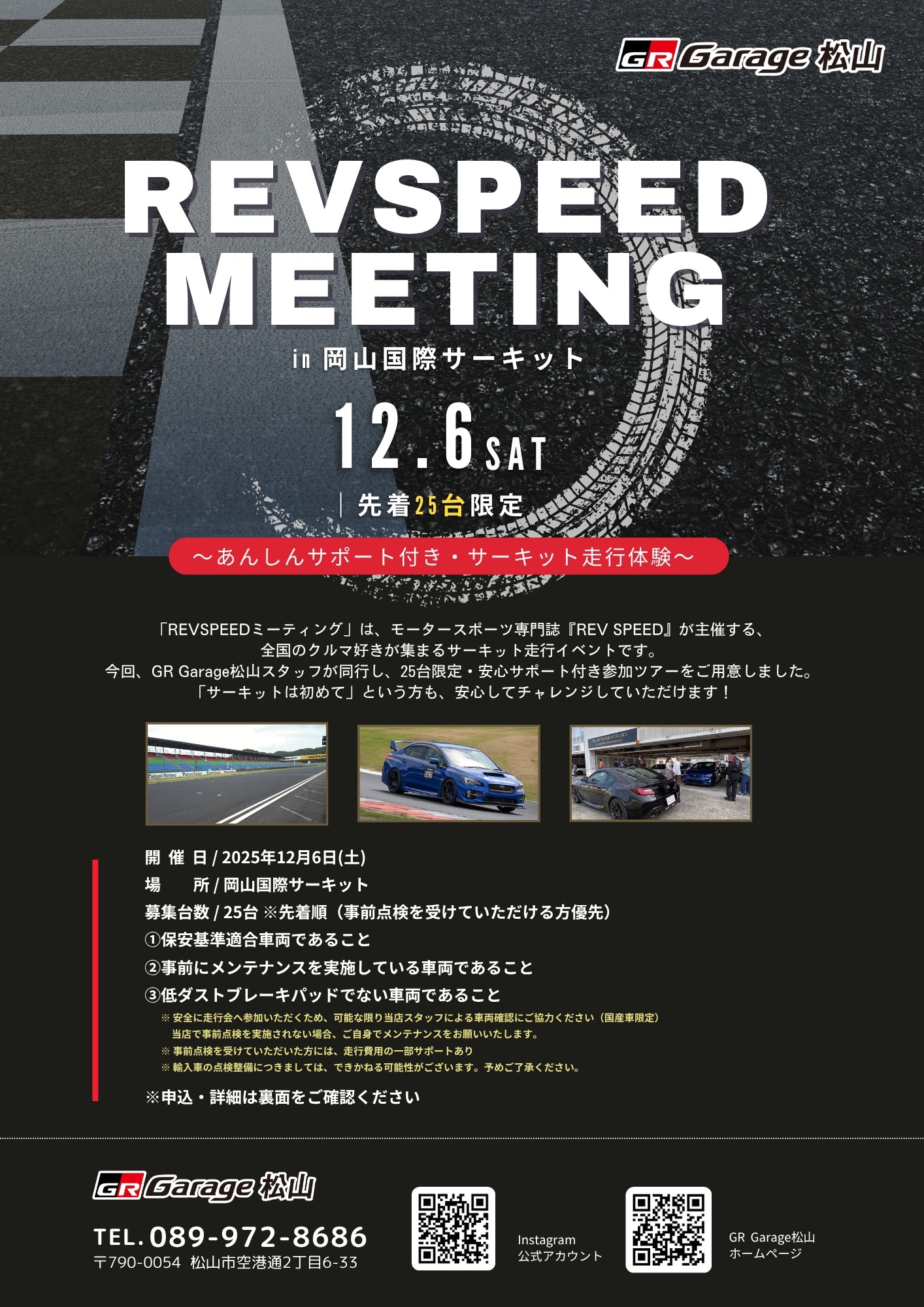 モータースポーツ専門誌『REV SPEED』が主催するサーキット走行イベント「REVSPEEDミーティング in 岡山国際サーキット」に、GR Garage松山スタッフが安心サポート付きで同行参加!