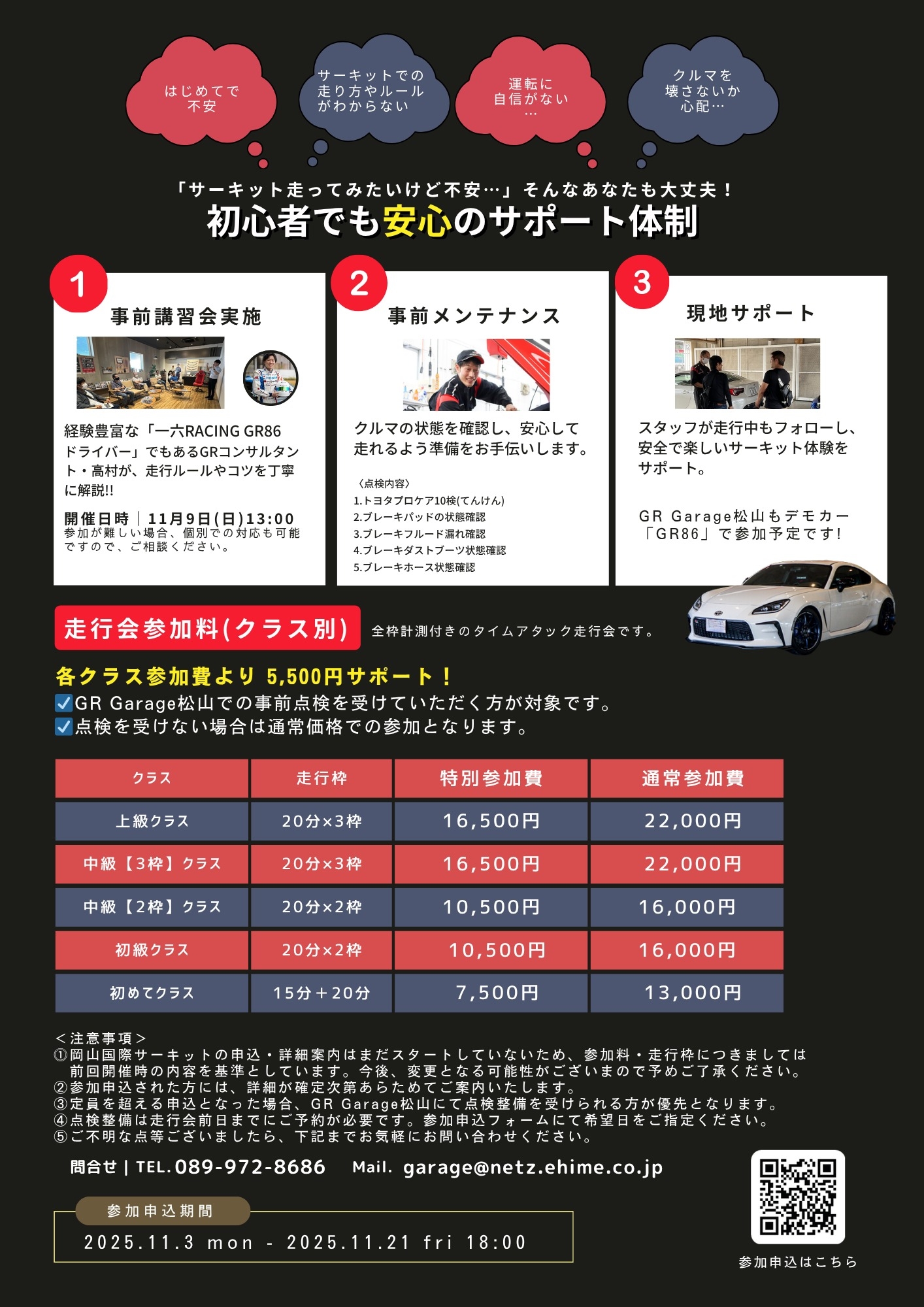 ③定員を超える申込となった場合、GR Garage松山にて点検整備を受けられる方が優先となります。