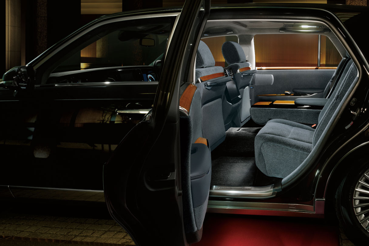 後席は上座であり、すべてに優先する。センチュリー(セダン)の車づくりは、そこから始まります。伸びやかなホイールベースは、後席のさらなるゆとりに捧げたものです。