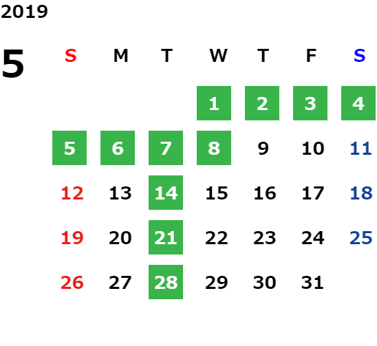 営業日カレンダー